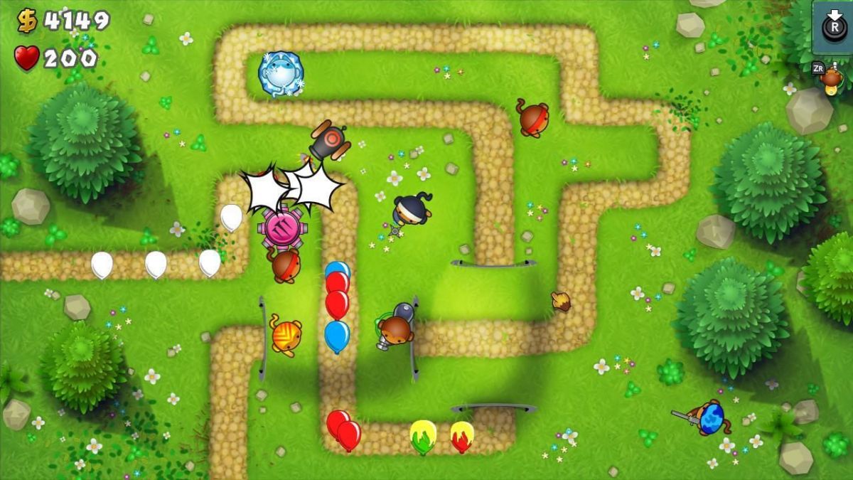 The premise of Bloons TD 5 revolves around preventing waves of colorful balloons (referred to as "bloons") from reaching the end of a set path. Players achieve this by strategically placing various monkey towers along the route, each with unique abilities to pop, freeze, or otherwise hinder the progress of the bloons.