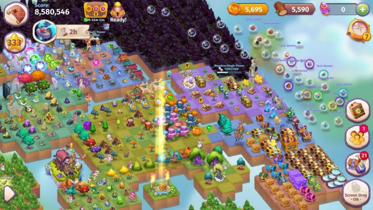 The game also incorporates a progression system that rewards players with experience points and currency for successful merges and completing objectives. As players level up, they unlock new features, creatures, and areas to explore. The gradual expansion of the game world creates a sense of accomplishment and discovery, motivating players to continue their magical journey.